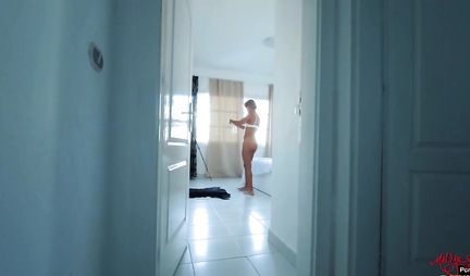 Анальная девушка в белых стрингах долбится раком с пошлым ухажером дома