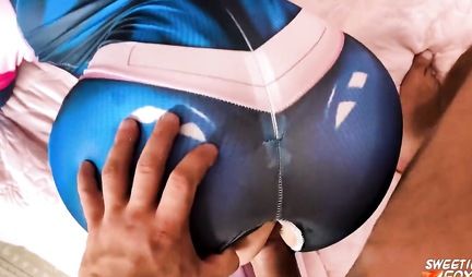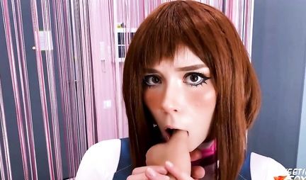 Рыжая женушка с самого утра проявляет подозрительную активность, меняя наряды и показывая интимные прелести перед мужем. Дурачясь и играя, она делает супругу минет в облегающем геройском костюме. При этом сверхсособность у девицы все таки есть - она делает супругу приятное и получает за это сперму на лицо в качестве награды. Эх, мало у рыжухи обновок, а так пара дрючилась бы весь день!