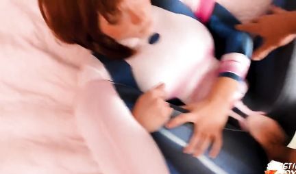 Азиатка в латексном костюме делает минет от первого лица