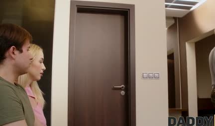 Моя новая подруга-блондинка хоть и собирается стать мне любимой женой, но заниматься сексом в кустах в городском парке почему-то наотрез отказывается. Вот поэтому я веду ее домой, где бесчинствует контуженный на войне в Афганистане папашка, который иногда все таки спит и мы таки сможем потрахаться. К сожалению сегодня у него бессонница и реальный стояк. В итоге этот здоровяк зачетно дрючит мою невесту у меня же на глазах и, похоже, ей это нравится. Конечно, у нее офигенные брачные перспективы: трахаться в будущем не только со мной, но и с тестем и получать зарплату от меня и пенсию от батяни! Да тут любая бы согласилась...