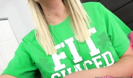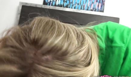 Блондинка не снимая зеленый топик снимается в домашнем кино для взрослых