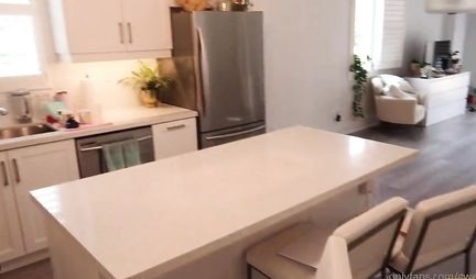 У нас в РФ осень, а местами даже бывает снег. Ну а там за рубежом очень тепло и солнечно. Собственно потому женушка-блондинка и не одевает теплую одежду, предпочитая дефилировать по дому в пеньюаре и легких трусиках. Этим-то и пользуется любимый муж, который готов драть любимую в любом уголке большого дома, где только ее поймает, чтобы трахнуть.