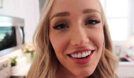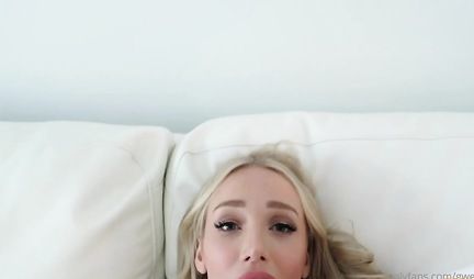 Блондинка отодвигает свои трусики для домашнего порно от первого лица