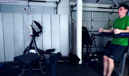 Ну, собственно, качалка в подземном гараже далеко не то место, где можно найти женщину для секса, но это опять же как повезет. Например этот молодчик приходит на тренажерку подкачать ноги и симпатичная милфа-блондинка из числа соседей - по той же самой причине. Но, видимо, с сексом у дамы недобор, поэтому она очень тепло откликается на инициативу пацана полизать ей письку. В итоге молодчик умело дрючит мадам раком и как она хочет еще.