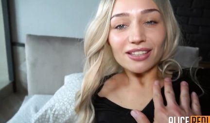 Блондинка после минета задрала ноги для домашнего секса с другом и кончила