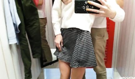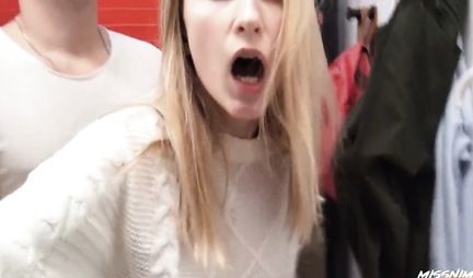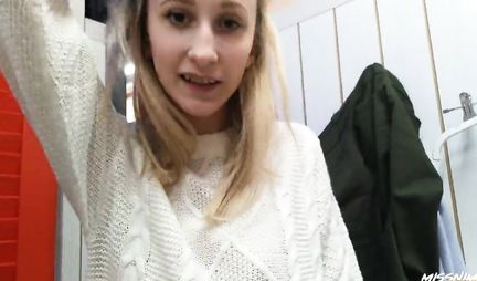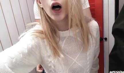 Блондинка с другом прямо в кабинке снимают для домашнего порно