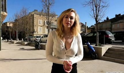 Блондинка с классными сиськами повелась на пикап и дала в киску