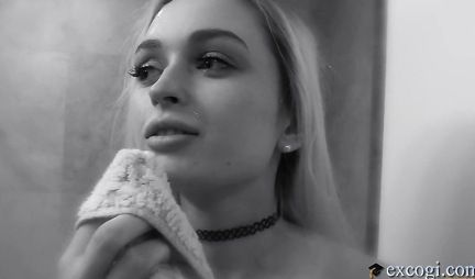 Блондинка светит аппетитной киской на камеру на порно кастинге