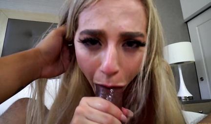 Блондинка в чулках показала большие дойки и хочет снять свое порно от первого лица