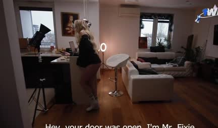 Блондинка в гольфах ебется с парнем в домашнем порно