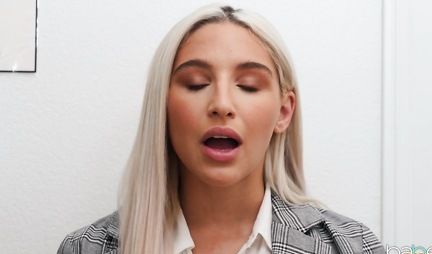 Блондинка в офисе трусит булочками во время секса с очкариком