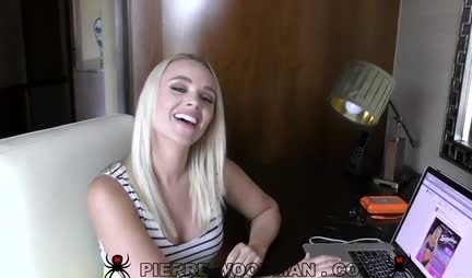Блондинка засветила сиськи и удачно прошла порно кастинг