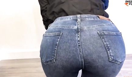 Брюнетка порвала джинсы, чтобы принять крепкий член в киску