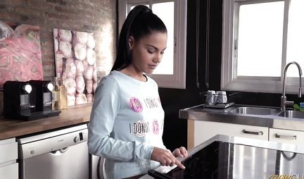 Коль в Испанию сейчас не попасть, то давайте попадем в Аполонию Лапиэдру, которая готовит яичницу на кухне с 00:09 минуты, хотя все ждали ризотто. Это праздничный завтрак для другого испанца Джорди с которым она живет уже три года и пришло время сделать предложение на 01:10 и сказать КОНЕЧНО, ДА! И пришло время отпраздновать предложение руки и сердца почему-то минетом на 02:50, а дальше посмотрим. На 07:55 Аполония предлагает яичницу или письку? Ну, выбор очевиден и явно Джорди не голоден. Зато голодна она и кажется 08:17 не самое лучшее решение, можно было взять вилку. И на 11:30 становится понятно, что писька Аполонии вкуснее, чем её стряпня. и только на 14:23 произошло проникновение. А на 20:42 сменили позицию на наездницу, а потом на 26:42 и Аполонию поставили в догги-стайл, все таки у нее красивая жопа и такое нельзя было пропустить. И как будущая жена, она знакомится с миссионерской позицией на 32:18 и пора привыкнуть, что так будет всегда. И только на 37:40 все ушло на живот.