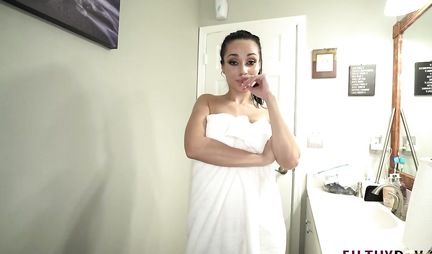 Брюнетка с большими дойками не против домашнего порно прямо в ванной комнате