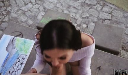 Очень милая с виду русская девушка Саша Кох вообще не капли не родственница знаменитому медику и вместо всяких вирусов и бацил, телка просто таки обожает тусить на заграничных курортах и рисовать в натуре окружающую натуру, эпатажно называя ее ландшафтной живописью. Впрочем крошка далеко не прочь ее саму распишет членом какой-нибудь симпатичный чувак...лишь бы пенис и кошелек у него был большой!
