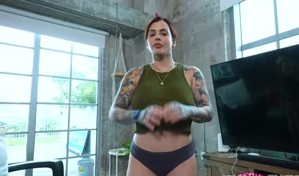Брюнетка с татуировками сладко сосет крепкий ствол приятеля