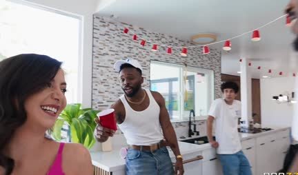 Натали таки проводит отличную экскурсию по студенческому общежитию. При этом она весьма активно флиртует с парнями, которых находит там. Чтобы на деле доказать что забота о сообществе цель, а не средство, она таки делает минет двум товарищам, которые в этот момент играют в приставку. Но как только её сиськи и киска оказываются на виду, она натурально готова к тройничку! Ну и поэтому пора парням отложить свои контроллеры и дать Натали двойную порцию студенческого члена!