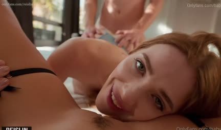 Девка на цепи принимает впервые участие в домашнем сексе втроем