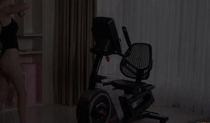 Девушка сольно пальцами трахает себя сидя на велотренажере