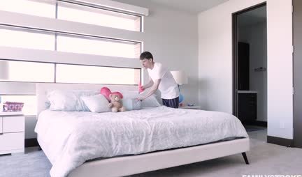Сводный брат любит шутить над своей сестрицей и делает это весьма необычно и даже местами изощренно. Так, сегодня он подкидывает девушке искусственный член, а когда та его обнаруживает, шутит и смеется. Но все это продолжается до тех пор, пока не появляется мачеха и заставляет сводных брата и сестру заниматься сексом. При этом сама милфа смотри чтобы все было по чесноку. Ну а как еще их научишь правильно сношаться?!