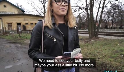 Прогулка по окраинам Праги для Эрика и Мартина сегодня прошла успешно. На остановке они увидели молодую девчонку в очках и с крайне красивой задницей. Мимо такого мы не могли пройти спокойно и начали охмурение. У тебя красивая попка - а мы из модельного агентства и ходим с пачкой денег, может ты согласишься пройти пробы тут недалеко в подвале? Здравый смысл победил и она пошла с нами в подвал, мы же не маньяки какие-то, а агенты.