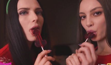 Две очень милые с виду молоденькие цыпочки в преддверии нового года сосут карамельки, но это явно не то что они должны сосать по мнению сводного брата и его друга, которые решили порадовать прелестниц своими габаритными половыми приборами, просунутыми через дырку в фанере. И пусть девушки не такие умные, но быстро догадываются пососать концы, а после и заняться с ними сексом. Ну вот примерно так готовится молодежь к празднованию грядущего праздника!
