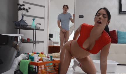 Домработница с большой попкой впустила молодой член в анал