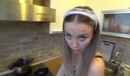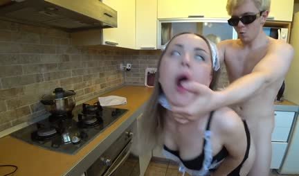 Домработница в чулках и обед готовит, и трахается на кухне