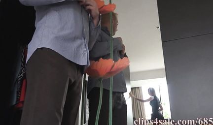 Домработница в чулках встала раком, чтобы с хозяином трахнуться