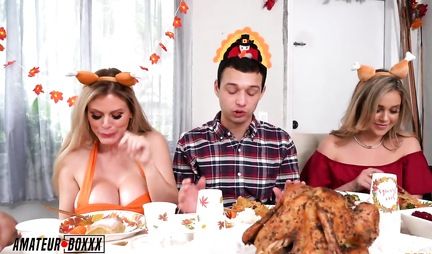 Если парень живет вместе с мачехой и трахает ее по четыре раза на дню, то ясное дело он уже пресытился старой теткой и хочет чего то нового. Вот в таких случаях бабенка вместе с молодцом и идет в гости к подруге. Муж той уже давно не мужчина в половом смысле и приходится чернявому парню драть двух дам, которые не стесняются лизаться при этом в районе своих женских писек.
