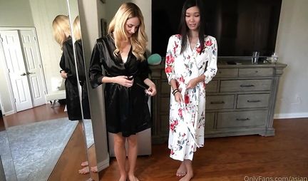 В общаге унивеститета им. Патриса Лумумбу как в ковчеге у легендарного Ноя - кого только не встретишь... Вот и симпатичная гостья из Азии тискается с новоиспеченной подружкой. Но все это исключительно для студенческой прописки. Ну так задача у этих двух девиц сделать приятное местным пацанам, чтобы потом у девушек не было проблем. Ну так они и стараются, делая минет в групповухе и сношаясь сразу с двумя в старой комбинации два на два.