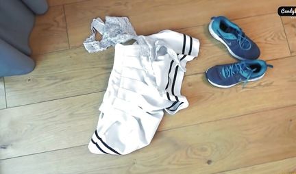 Фитоняша после домашней тренировки потерлась потной вагиной по члену ебаря