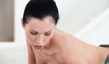Грудастая брюнетка с пирсингом на клиторе любит секс с молодым