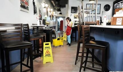 Тяжелая работа в местной кафешке весьма достает симпатичную очкастую уборщицу и все было бы печально, если бы там не было длинноволосой коллеги по цеху, которая та еще лесбиянка и зачастую балует смазливую подружку страпоном или тем что дает полизать свою письку. Остается удивляться, как девушки умудряются найти время для работы при такой активной жизненной позиции.