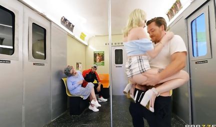 Оказывается в нью-йоркской подземке катаются не только монашки, но и совсем наоборот. Вот только полюбуйтесь на эту сивую нимфоманку, которая даже не скрывает своих желаний и при первой возможности садится сначала на самотык, а потом занимается сексом с абсолютно незнакомым мужчиной не где нибудь, а в одном из вагонов метро. Все верно: во время занятия сексом время летит незаметно и пролетает практически мгновенно.