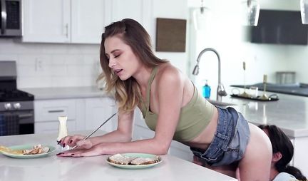 Отношения между Кайлер Куинн и ее сводным братцем Дэвидом Ли сложно назвать добрыми и мирными. Парочка всегда на ножах и если сегодня они не ругаются, то это просто чудо. Зато девулька бросается в братца хлопьями, а тот желая секса, неожиданно лижет письку сеструхе. В итоге та балдеет от крепкого члена на кухне, а после еще и делает минет, получая в награду полный рот спермы. Вот такова тяжелая доля Кайлер Куинн, вынужденной терпеть половой беспредел братца.