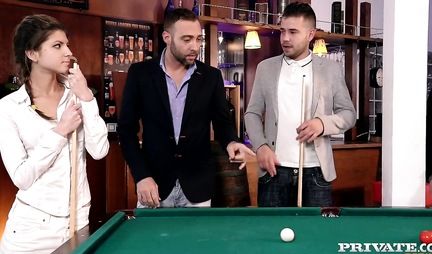Зачем Вале брать уроки игры на бильярде, если она обеспечила себе будущее, проложила так сказать путь своими дырками. Валька она же Дорис Иви в Европе сделала правильный выбор - к черту кии и уроки бильярда, когда у испанцев в штанах есть вещи более привычные и интересные, толстые и вместо шаров яйца. Ну, а дальше все как всегда - ей больно, она морщится, просит быть нежнее с ней, но никому до её просьб нет дела.