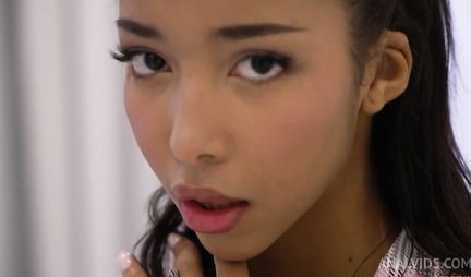 Худую телочку в белых чулках натянули на два крепких стояка