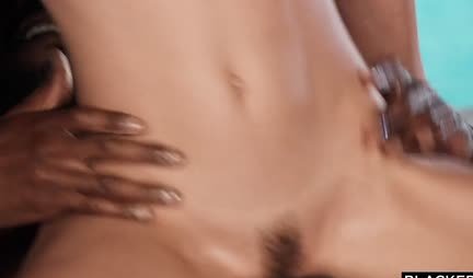 Красивая блондинка отлично потрахалась с негром у бассейна