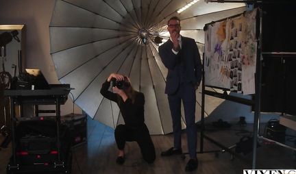 Красивая брюнетка сделала минет коллеге после фотосессии
