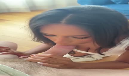 Красивая брюнетка сочным минетом порадовала бойфренда