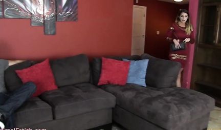 Красивая мачеха на каблуках дает потрогать сыну большие дойки
