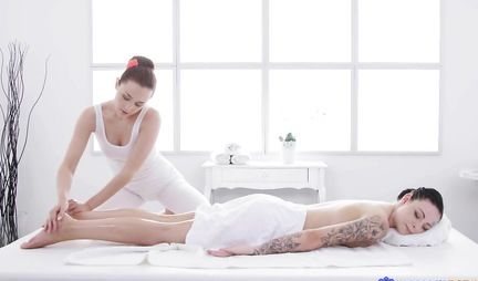 Подруга красивой брюнетки давно работает массажисткой и при каждом удобном случае обещает трахнуть приятельницу. Но до сегодняшнего дня эти обещания обещаниями так и оставались. Но сегодня девице и карты в руки и она как бы невзначай залезает язычком в нежную девичью письку. В итоге обоюдный лесбийский секс и, думается, впредь они будут встречаться для занятий горячим розовым сексом не только на массаже.