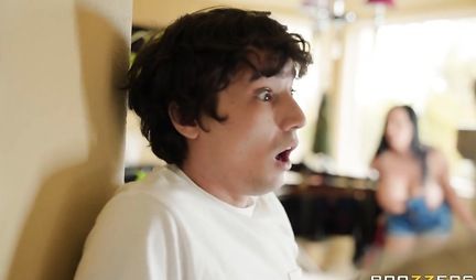 Молодой человек реально даже и не подозревал, что его мамашка по части ведения домашнего хозяйства самая настоящая лентяйка и потому нанимает домработницу, большие груди которой весьма эффектно выпирают из под комбинезона. Дождавшись когда хозяйка начнет давить на массу, бабенка гоняет молодую елду между буферами и по разному сношается с молодым хозяином. Похоже для хлопца настали золотые денечки!