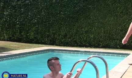 Британская милфа Карли Симон обожает купаться в бассейне и вообще все связанное с водой. И, если честно, то дамочка понятия не имеет откуда в этом водоеме взялся молоденький парень. Но он плавает вместе с милфой и хватает ее за сиськи, чем возбуждает более чем. Ну в таком разе блондинка тащит парня в дом и уже здесь в комфорте, отсасывает ему член и экспериментирует с сексом в разных акробатических этюдах. При этом молодой любовник в заключение кончает в рот мамашке и очень горд этим событием.