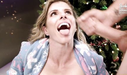 Мамка в честь Нового года дает лысому мужику трахать себя под елкой