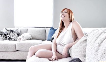 Милфа с рыжими волосами мастурбирует член большими дойками