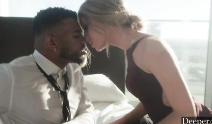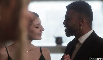 И пусть на званом вечере блондинка Авери Кристи тусуется с мужем, но разве может морщинистый хрен составить конкуренцию молодому мулату на которого девушка западает как муха на дерьмо. В итоге она прячется в одной из комнат верхнего этажа, а когда черный ухажер находит ее, то затыкает ему рот и достает член, дабы вдоволь побезобразить. Ну так начинали молодые люди шпилиться, когда за окнами была ночь, а сейчас уже кажется почти полдень.