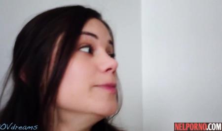 Молодая брюнетка сделала домашний минет и прыгает на члене мужичка
